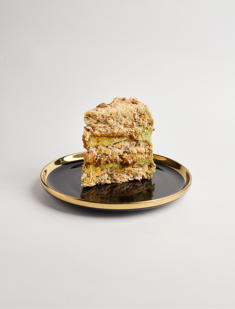 Peanut cream cheese, caramel peanuts, cream ganache (milk chocolate), crispy layer, chocolate biscuit